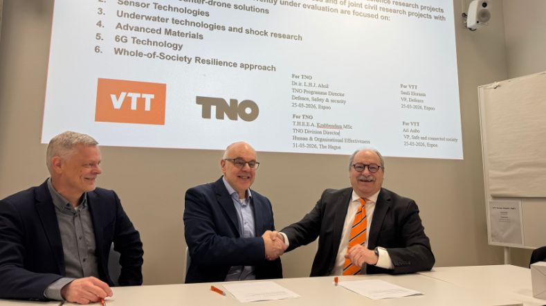 TNO and VTT Technical Research Centre of Finland will further shape and expand their cooperation in the field of defense..