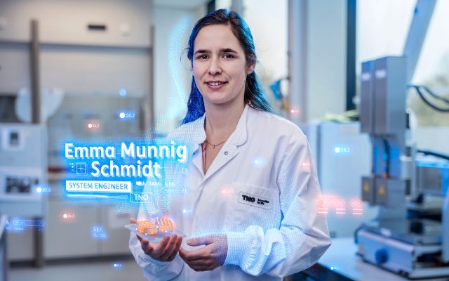 “3D-printen opent de deur naar talloze nieuwe bronnen van vleesvervangers. Zelfs eiwitrijke producten die nu worden weggegooid, kunnen zo worden benut.” Emma Munnig Schmidt, Systems Engineer bij TNO