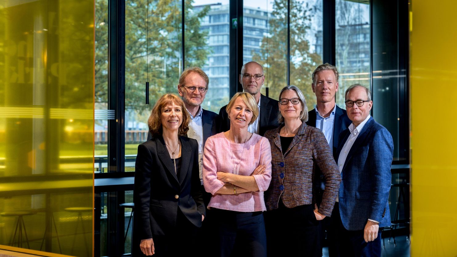 Van links naar rechts: Miriam van Dongen, Peter van Laarhoven, Louise Verheij van Wijk, Gijs de Vries, Hester Bijl, Marko Hekkert en Baptiest Coopmans.